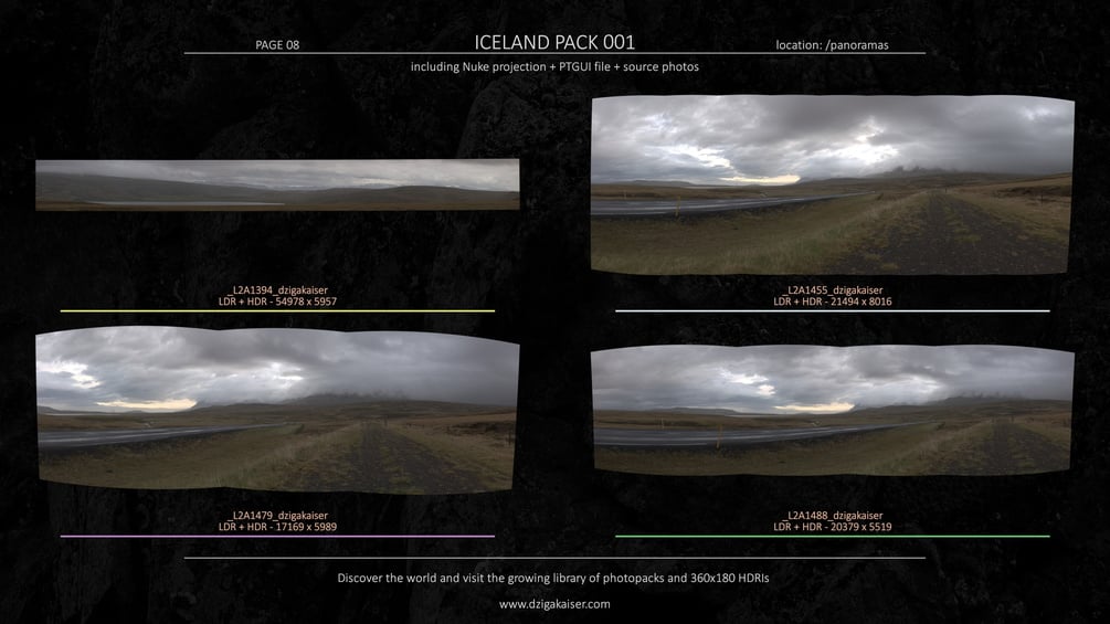 Panoramas are pre-stitched, including PTGui files*, 650 exposure bracketed source photos* and pre-mapped Nuke files*!