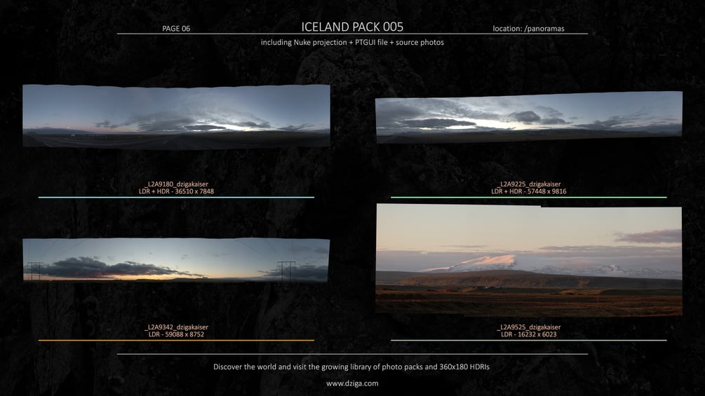 Panoramas are pre-stitched, including PTGui files*, 533 exposure bracketed source photos* and pre-mapped Nuke files*!