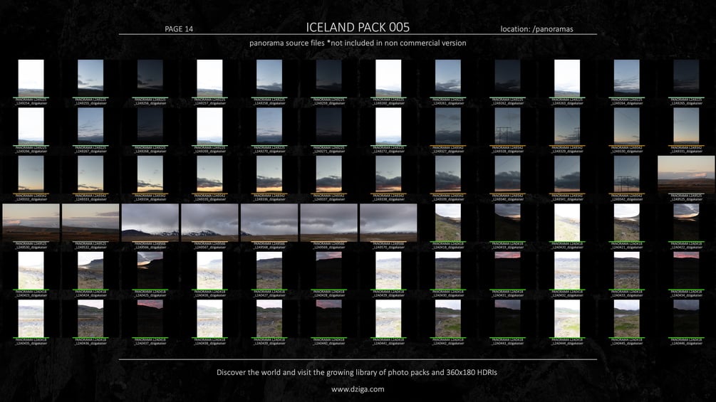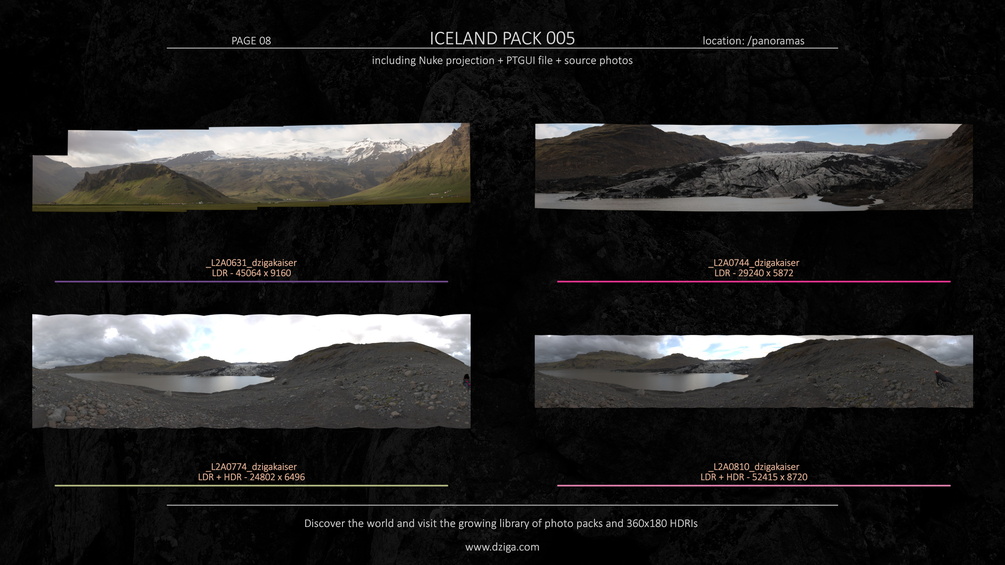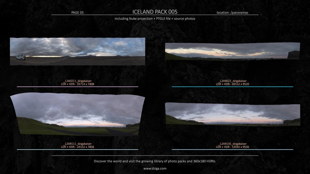 12 HDR panoramas with up to 69k pixel width resolution.